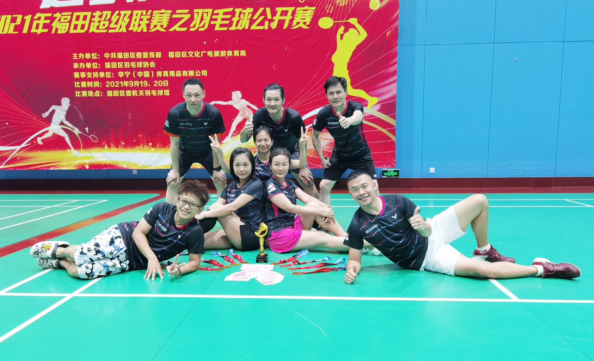 千里馬羽毛球球會青年組奪冠合影