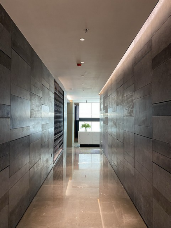 項目剛開工時,新冠疫情還未過去,大量工廠還未開工,該項目所使用的定制異形不銹鋼屏風、不銹鋼柜子、異形鋁板、進口潔具、進口馬賽克等加工周期長且工藝復雜的材料,對采購與運輸工作帶來巨大挑戰。