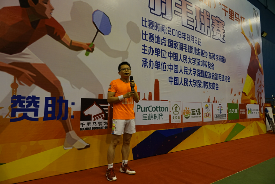 2018年9月8日以“羽樂共享,校友情真”為主題的第四屆人大校友(深圳)“千里馬杯羽毛球賽”在深圳東莞李永波學(xué)校開賽,參加本次聯(lián)誼賽的一共有十三支隊伍,分別是EMBA隊、商學(xué)院隊、福建福磚隊、88去哪兒隊、五湖四海隊、無影腳隊、人參隊、商會隊、捉妖隊、勞人混個獎隊等。
